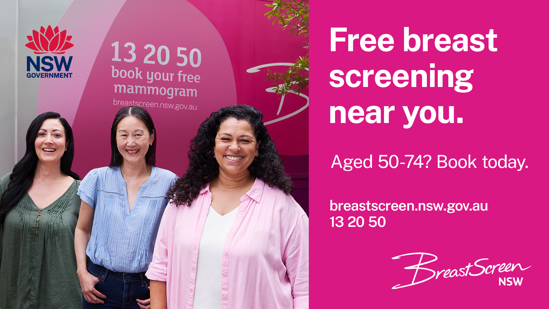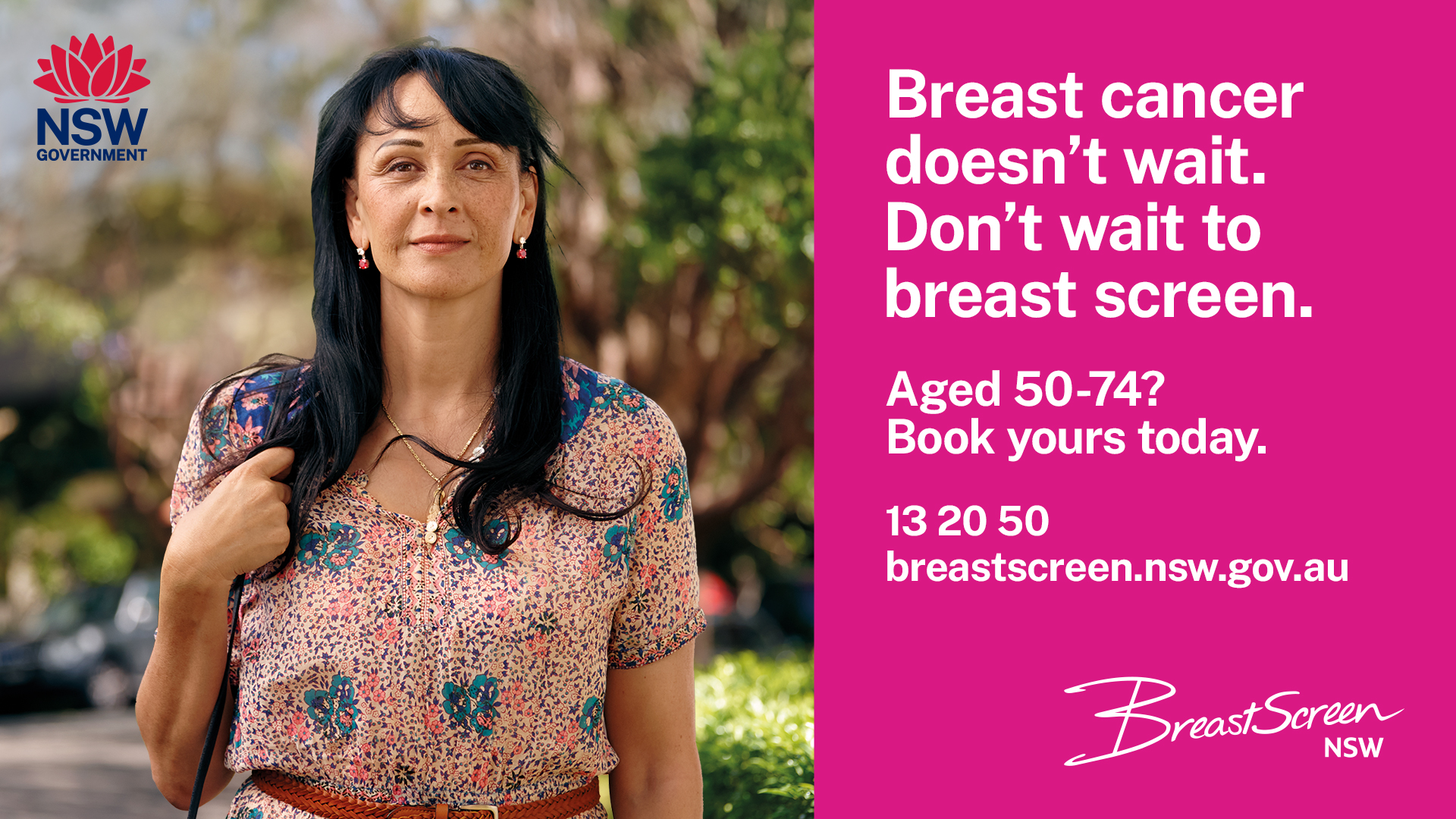Visit breastscreen.nsw.gov.au or call 13 20 50.